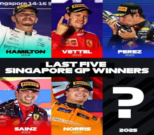 在過去的5屆新加坡大獎賽上,分別迎來了5個不同的分站冠軍,分別是漢密爾頓、瓦特爾、佩雷茲、塞恩斯以及諾里斯,如果這一魔咒繼續,那皮亞斯特里和維斯塔潘無疑是最具“玄學”色彩的,但核心還是車手自己的表現。