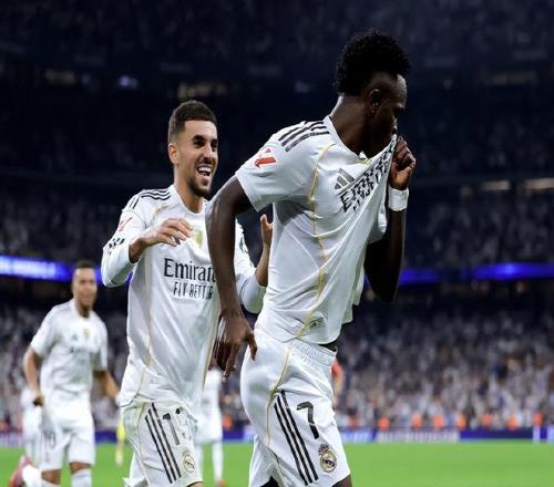 下半場回來皇馬繼續強攻,第48分鐘,巴爾韋德右路長傳轉移,維尼修斯左路底線前施展個人能力爆趟過人內切抽射近角,1:0!阿隆索隨即換人,貝林厄姆和卡馬文加替補出場;第69分鐘,貝林厄姆一腳直塞打穿對手防線,維尼修斯左路加速突破趟入禁區被回防的拉法-馬林直接撞翻在地;主裁判果斷判罰點球,姆巴佩將點球權讓給維尼修斯;后者沒有辜負信任一蹴而就完成了梅開二度,2:0!維尼修斯前8輪西甲直接參與9個進球,合計是5球4助攻,刷新了個人生涯新高。