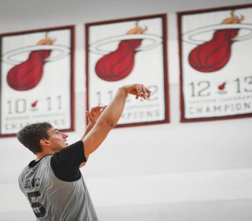 2023-24賽季,二年級的約維奇在熱火打了46場常規賽,其中38場首發。場均出戰19.5分鐘,得到7.7分4.2籃板2助攻,三項命中率:45.2%,39.9%,70.2%。到了季后賽,他的三分命中率升至40.9%,外線投射終于練出來了。