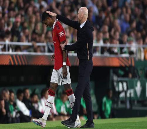 2022-23賽季歐聯(lián)1/4決賽,曼聯(lián)主場(chǎng)2-2戰(zhàn)平塞維利亞,拉什福德因傷缺席;在客場(chǎng),曼聯(lián)0-3慘敗,拉什福德踢了45分鐘。
