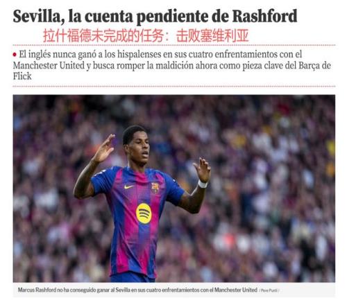 10月5日22點(diǎn)15分,西甲第8輪,巴薩客場(chǎng)挑戰(zhàn)塞維利亞。《世界體育報(bào)》賽前撰文指出,27歲的拉什福德,迎來復(fù)仇的絕佳機(jī)會(huì):過去4次對(duì)陣塞維利亞,(在曼聯(lián)效力時(shí)期)拉師傅未嘗勝績,一球未進(jìn)。