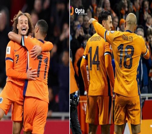 荷蘭隊(duì)史首次,四名來自英超的球員單場(chǎng)比賽分別進(jìn)球